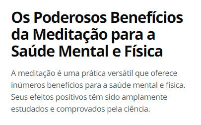 Aproveite sessões extras de meditação e prática mindfulness para aprimorar sua jornada. Comece sua transformação interior agora e descubra o poder da meditação para uma vida mais plena e significativa!